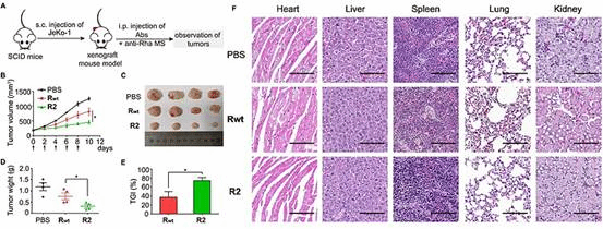 图2. 单抗-Rha偶联物的体内抗肿瘤活性评估