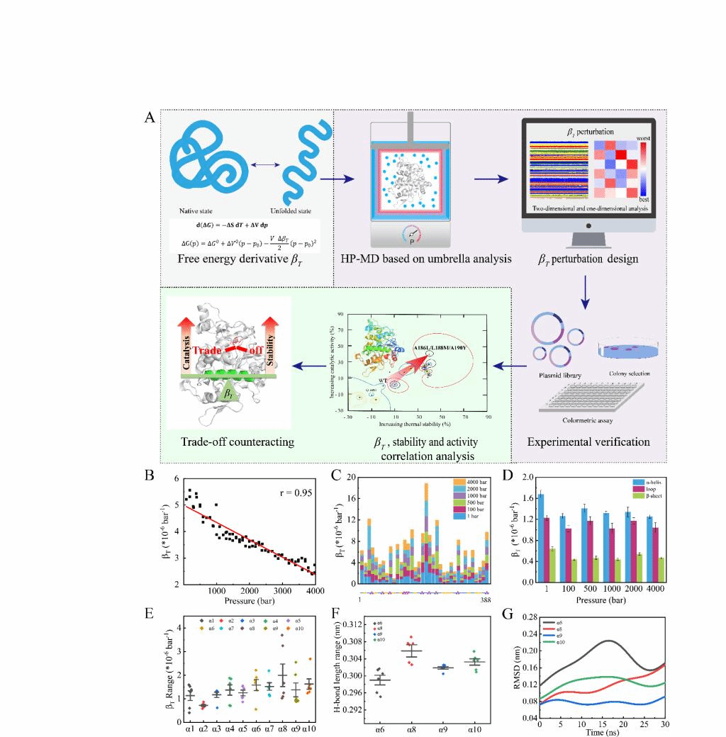 天然酶的低稳定性和低活性限制其在工业上的广泛应用。在酶改造的过程中,酶的稳定性与活性之间往往存在负相关关系,即高活性往往伴随着低活性,反之亦然。这种局限性被称为稳定性与活性之间的权衡。开发抵消酶的稳定性-活性改造策略,解析抵消机制具有重要意义。
