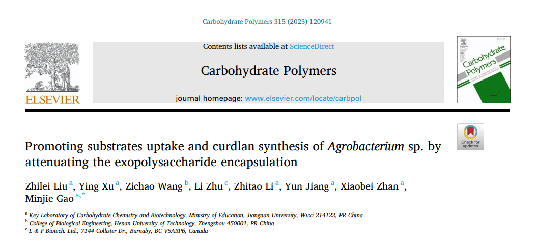 近期,我校beat365在线唯一官网高敏杰教授团队在低分子量热凝胶的高效制备方面取得重要进展,研究成果“Promoting substrates uptake and curdlan synthesis of Agrobacterium sp. by attenuating the exopolysaccharide encapsulation”正式发表于Carbohydrate Polymers (IF =/info/1021/ /11.2) (https://doi.org/10.1016/j.carbpol.2023.120941)。