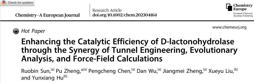 近期,我校beat365在线唯一官网郑璞教授团队在组合计算策略提高D-泛解酸内酯水解酶催化效率方面取得重要进展,并发表研究成果“Enhancing the Catalytic Efficiency of D-lactonohydrolase through the Synergy of Tunnel Engineering, EvolutionaryAnalysis, and Force-Field Calculations”, (Hot Paper).(https://doi.org/10.1002/chem.202304164)
