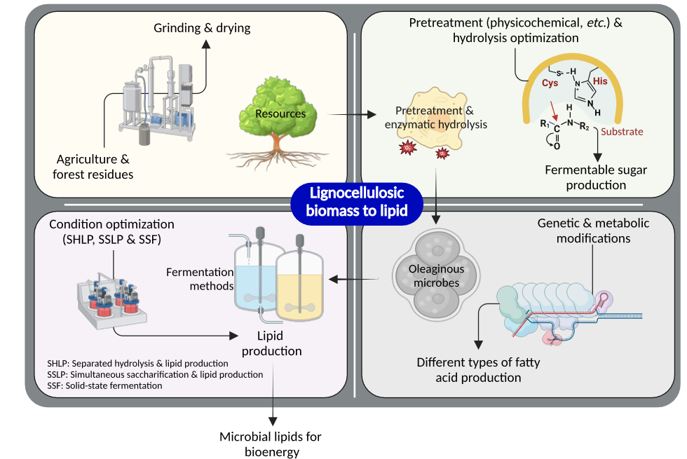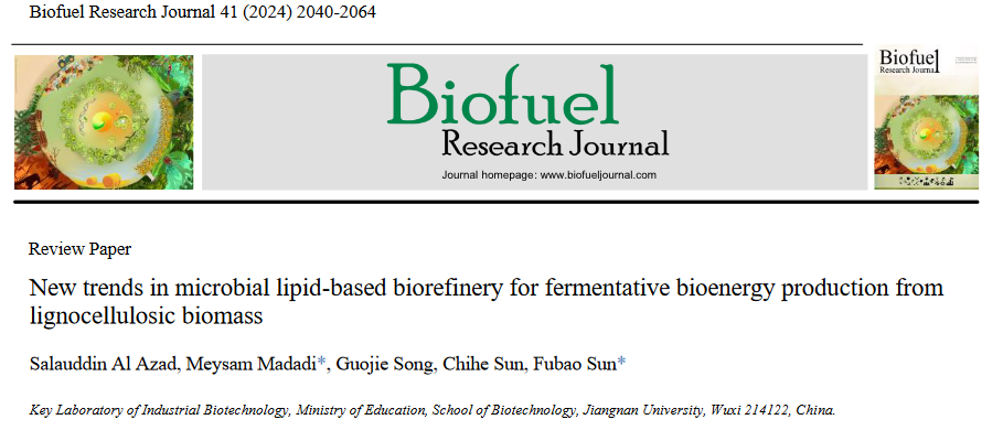 近期,我校beat365在线唯一官网生物资源与生物炼制研究团队对木质纤维素生物质糖发酵微生物油脂的研究进展进行了系统综述,以“New trends in microbial lipid-based biorefinery for fermentative bioenergy production from lignocellulosic biomass”为题正式发表于Biofuel Research Journal, 2024, 11: 2040-2064 (Q1, IF 12.99)