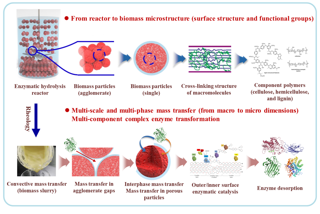图 1 木质纤维素生物质浓醪酶解的颗粒特性及传递行为