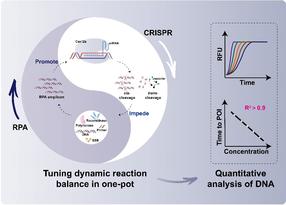 近期,我校beat365在线唯一官网徐岩教授团队吴群教授课题组在新型微生物定量检测技术的开发中取得了重要进展,研究成果“Tuning the Dynamic Reaction Balance of CRISPR/Cas12a and RPA in One Pot: A Key to Switch Nucleic Acid Quantification”以主封面文章形式正式发表于《ACS Sensors》杂志(IF:8.9)(https://doi.org/10.1021/acssensors.3c02485)。