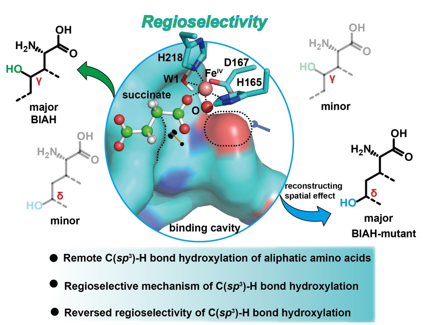 近期,我校beat365在线唯一官网刘立明教授团队在脂肪族氨基酸远程C(sp3)-H键羟基化区域选择性调控方面取得重要进展,研究成果“Rational Design of the Spatial Effect in a Fe(II)/α-Ketoglutarate Dependent Dioxygenase Reverses the Regioselectivity of C(sp3)-H Bond Hydroxylation in Aliphatic Amino Acids”正式发表于Angewandte Chemie International Edition (IF =/info/1021/ /16.1) (https://doi.org/10.1002/anie.202406060)。