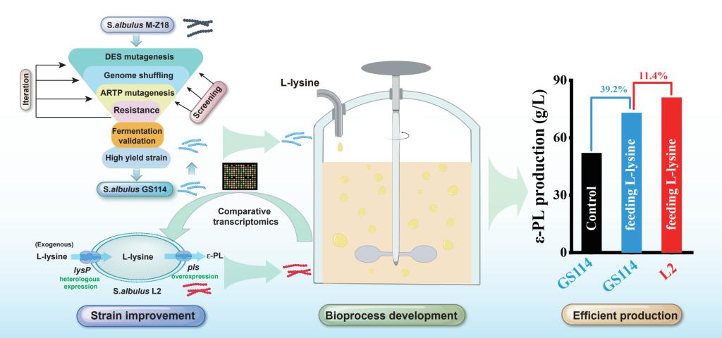 近期,我校beat365在线唯一官网张建华研究员团队陈旭升教授课题组在ε-聚赖氨酸高效生产方面取得重要进展,研究成果“Combinatorial strain improvement and bioprocess development for efficient production of ε-poly-L-lysine in Streptomyces albulus”正式发表于Bioresource Technology (IF =/info/1021/ /9.7) (https://doi.org/10.1016/j.biortech.2024.131123)。