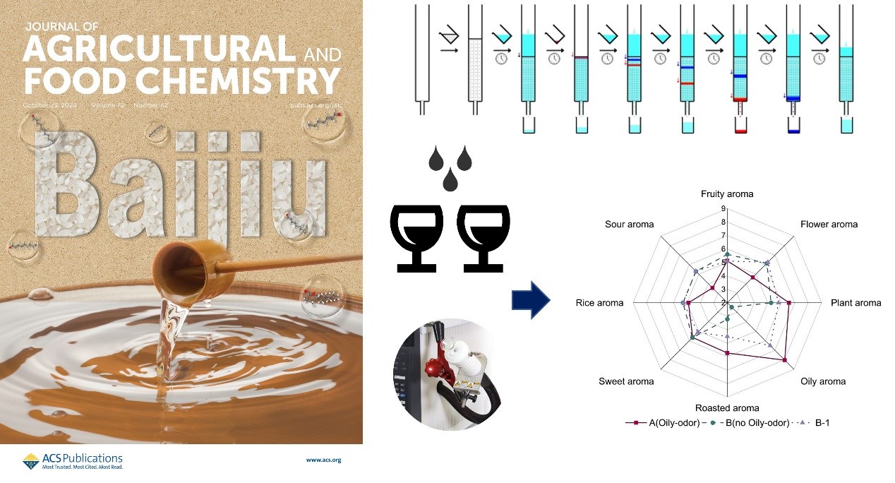 近期,我校beat365在线唯一官网徐岩教授团队唐柯副教授在米酿白酒特征风味解析方面取得重要进展,研究成果“Characterization of Potent Odorants Causing an Oily-odor in Rice-made Baijiu by Comparative Aroma Extract Dilution Analysis, Quantitative Measurements, Aroma Addition, and Omission Studies.”以封面文章发表于Journal of Agricultural and Food Chemistry(一区, Top, IF 5.7)(https://pubs.acs.org/doi/10.1021/acs.jafc.4c06256)。