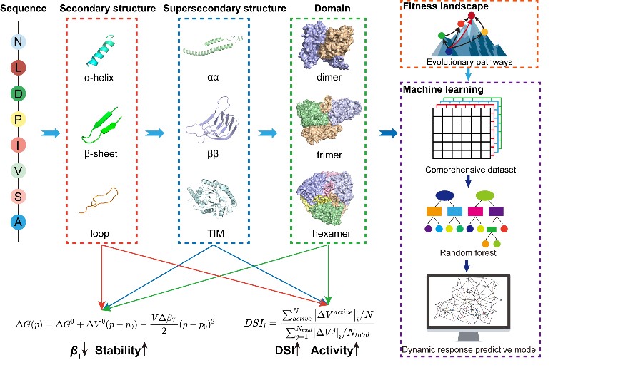 天然酶的低稳定性和低活性限制其在工业上的广泛应用。由于酶的稳定性与活性之间往往存在trade-off,获得具有高活性和稳定性的酶仍然是酶进化中的一个难题。该研究团队开发了一种多维构象动力学介导的等温压缩系数辅助动态压缩指数微扰工程(iCASE)策略,为不同结构复杂度的酶构建分层级模块化网络,指导酶的快速进化。此外,利用基于结构的监督机器学习建立动态响应预测模型,预测酶的功能和适应度,在不同数据集上表现出稳健的性能和可靠的上位性预测,选择不同结构和催化类型的酶验证iCASE 策略的通用性。这种基于机器学习的 iCASE 策略为今后研究酶的适应性进化提供了指导。