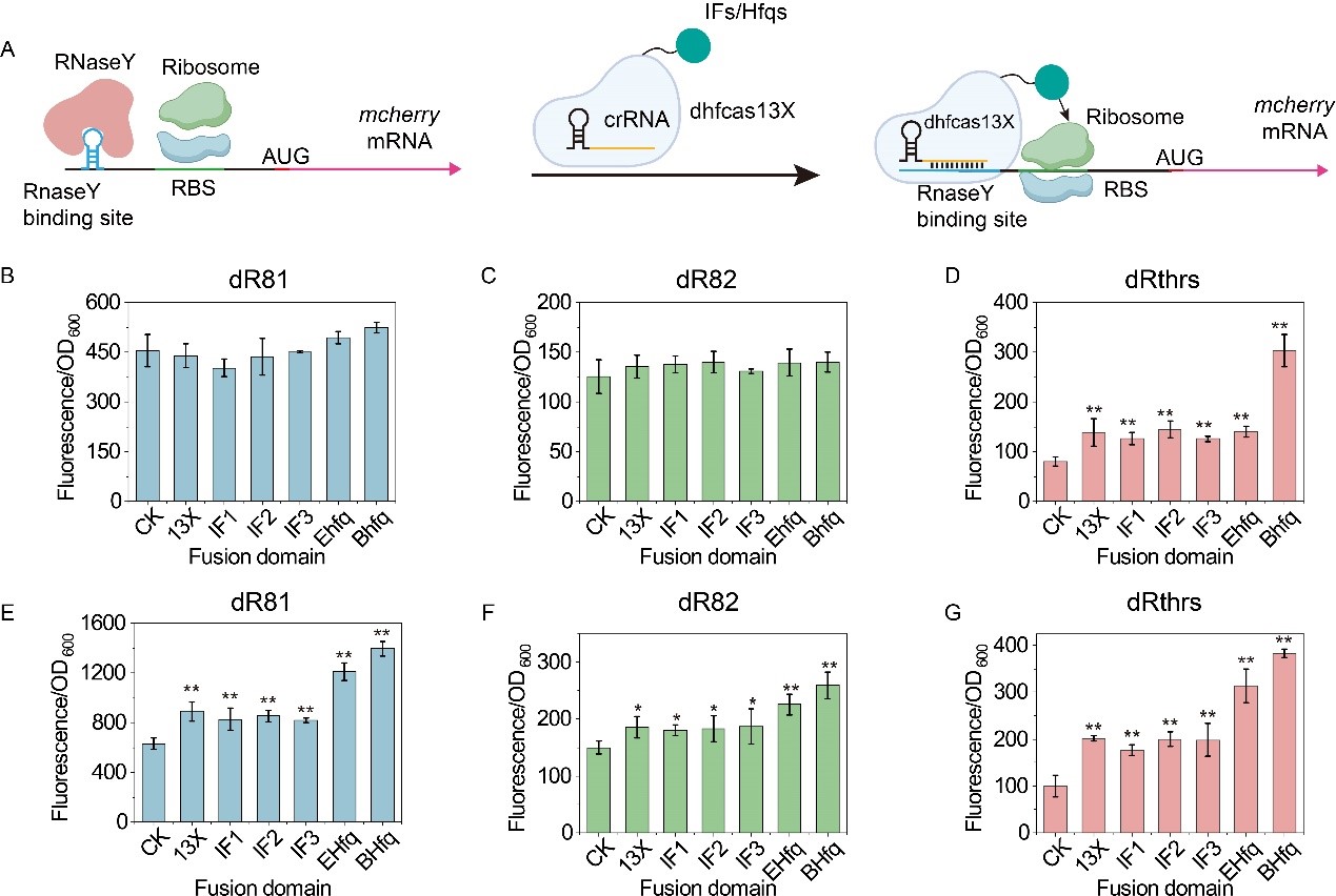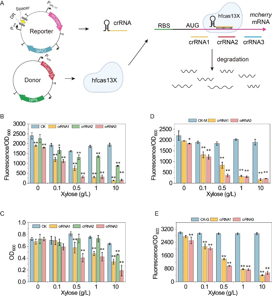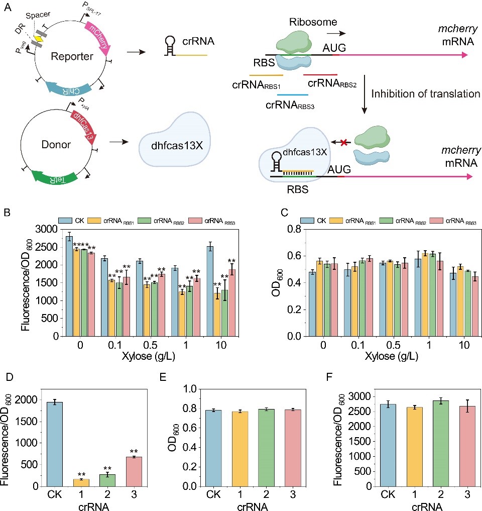 图3 基于dhfCas13X的CRISPRi系统构建和表征
