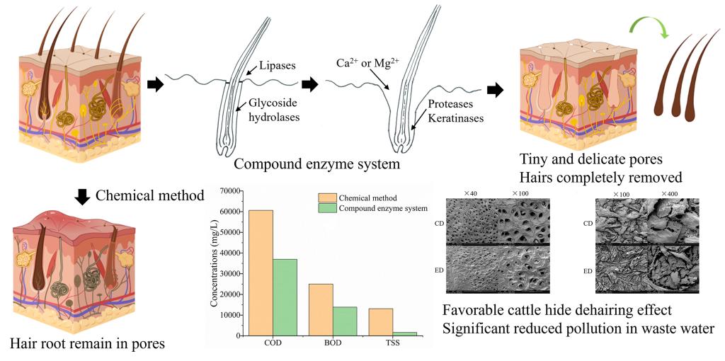 近期,我校beat365在线唯一官网李崎教授团队在皮革环保脱毛方面取得重要进展,研究成果“Significant alleviation of water pollution in leather dehairing through the construction and application of an eco-friendly compound enzyme system”正式发表于Journal of Environmental Chemical Engineering (IF =/info/1021/ /7.4) (https://doi.org/10.1016/j.jece.2025.115520)。