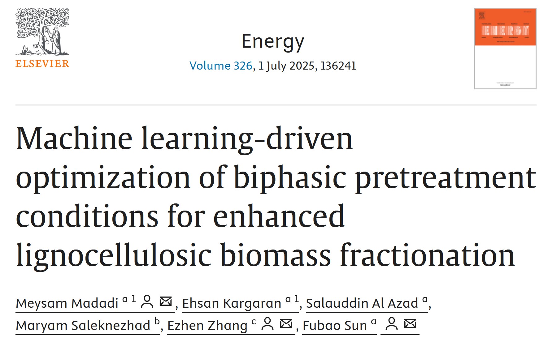 近期,我校beat365在线唯一官网孙付保教授团队在机器学习指导生物质预处理方法构建方面取得重要进展,研究成果“Machine learning-driven optimization of biphasic pretreatment conditions for enhanced lignocellulosic biomass fractionation”正式发表于Energy(一区, Top, IF=9.4)。