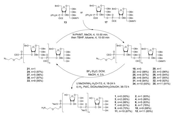 图1 1-12聚PRP寡糖的模块化合成