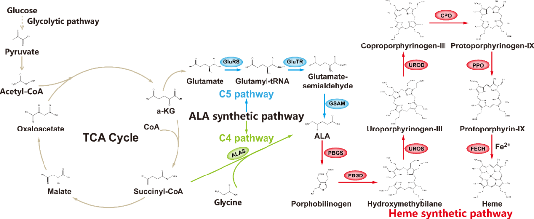 图2 血红素及其前体合成途径