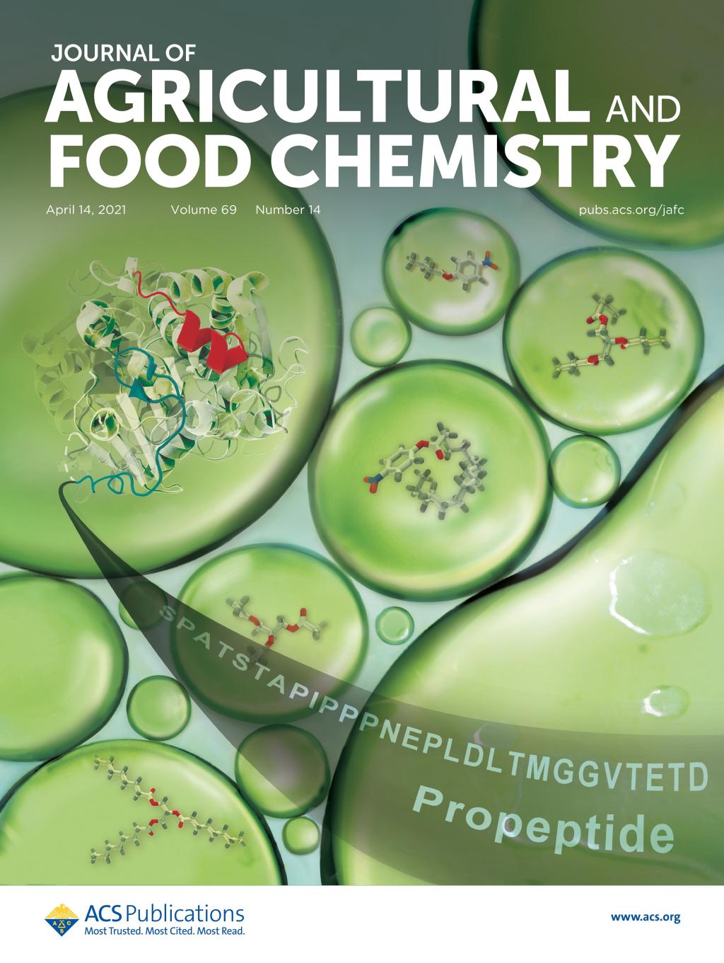 近日,我校beat365在线唯一官网酿造微生物学与应用酶学研究室徐岩、喻晓蔚教授团队在脂肪酶前肽研究取得重要进展,研究成果“Propeptide inRhizopus chinensislipase: new insights into its mechanism of activity and substrate selectivityby computational design”封面发表于农林科学领域Top期刊Journal of Agricultural and Food Chemistry(IF=4.192)(https://doi.org/10.1021/acs.jafc.1c0072)
