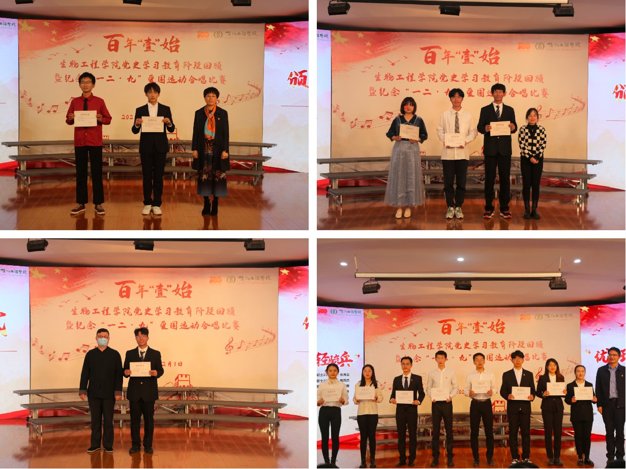 经过激烈的角逐,生物一班合唱团荣获一等奖;生工三班联合研究生、生物二班合唱团荣获二等奖;酿酒二班、生工二班、生工一班合唱团荣获三等奖;基地一班、酿酒一班、基地二班、“茅台班”合唱团荣获优秀奖。“聚生工星火,谱百年华章。”在新形势下,学院将继承和弘扬民族精神,持续推进党史学习教育,从胸怀国之大者角度增强政治自觉,增强育人担当。