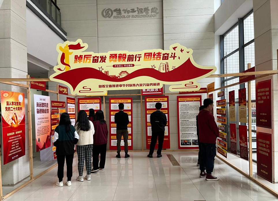 研究生第一大组的预备党员开展“党的二十大·青年学”活动,参观学院党的二十大精神学习展厅。展厅分为大会基本情况、党的二十大报告主要内容、有关教育的重要论述、学院师生学习感言等四大部分,嵌入“发酵你的梦想”“善于实践 勇于创新”等学院学科文化设计元素。通过全景呈现与重点内容提要相结合、党的二十大和学院特色相结合的形式,引领青年练好本领,朝着党的二十大指明的方向奋勇前行。