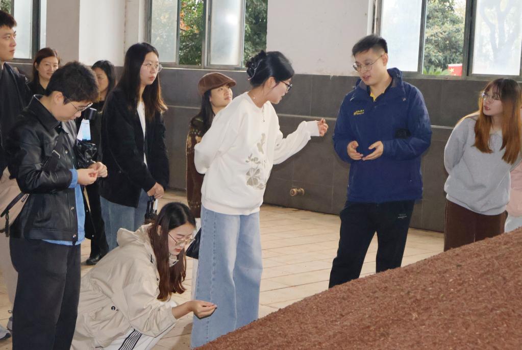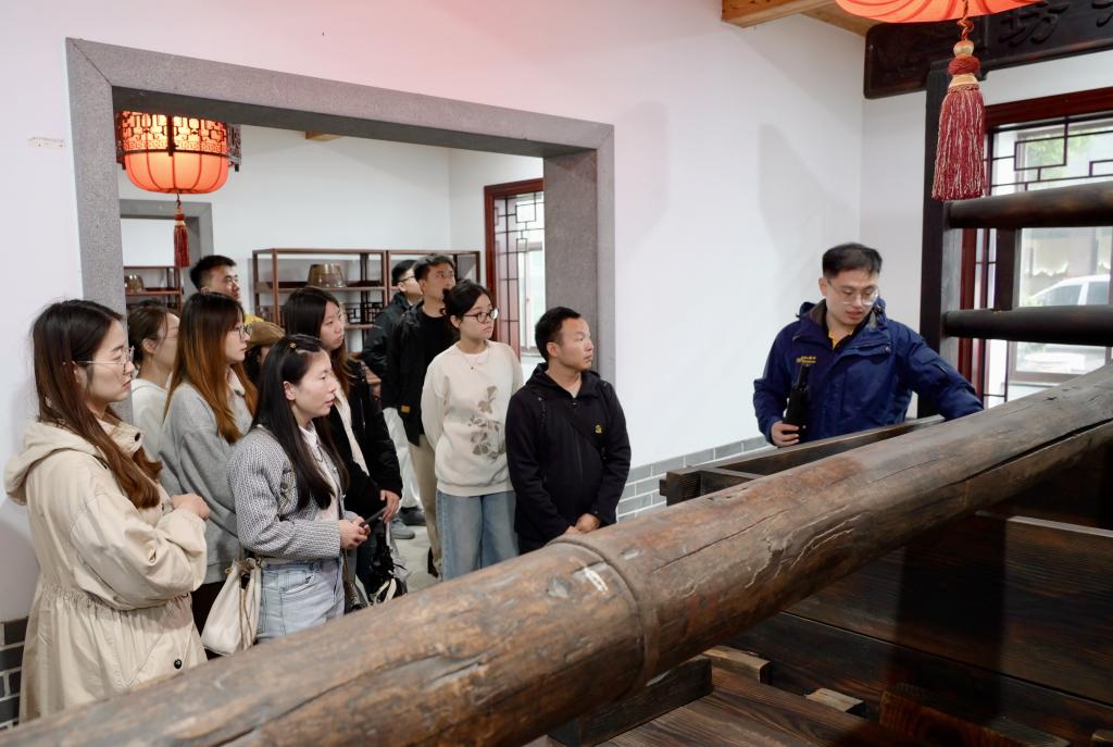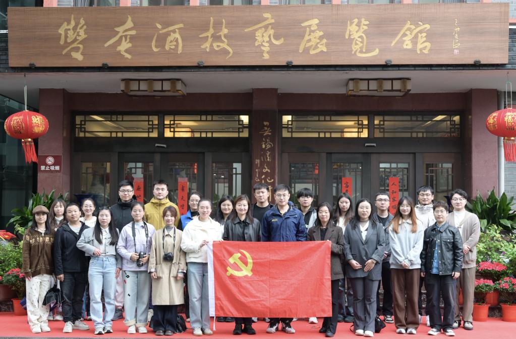 座谈会后,全体党员赴无锡市玉祁酒业有限公司开展实地研学。在公司生产部经理高翔带领下,党员们学习了解企业发展历程和酿造文化历史,参观双套酒技艺展览馆、白酒生产车间,认识鉴别酿造产物的风味表现。通过讲解聆听、实物观看、现场观摩,党员们对传统酿造技艺和工匠精神有了更深入的体会,对“酶”在酿造产业中的关键作用和创新应用有了更全面的认知。