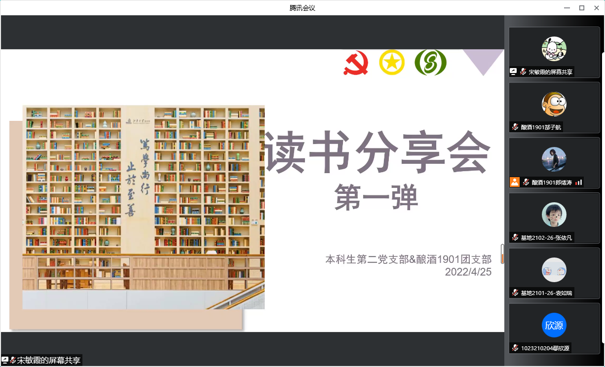 4月25日晚,beat365在线唯一官网本科生第二党支部、酿酒1901班“赤水河”特称团支部联合举办了“书海遨游拾贝”读书分享会。来自党支部和团支部的5名同学依次分享了推荐书籍,100余名同学聆听分享。在思想碰撞中,大家的视野得以打开,收获颇丰。