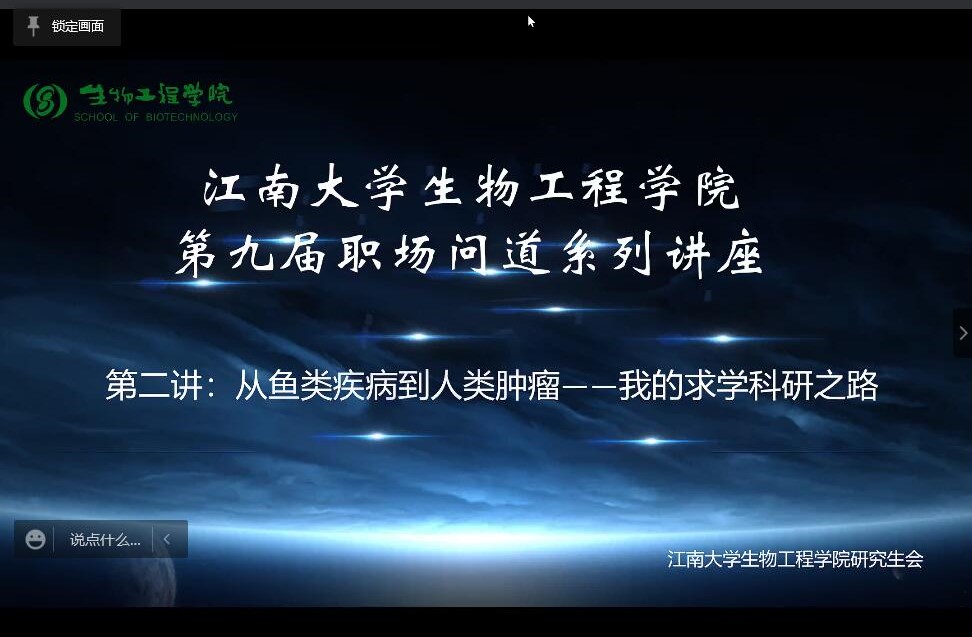 分享伊始,张泽为大家讲述了自己的科研经历,介绍了对罗非鱼中无乳链球菌的研究。无乳链球菌是导致我国罗非鱼链球菌病的主要病原菌,该菌能导致动物体产生败血症和脑膜炎,且具有较高的致死率。通过对其研究,以便发现新的流行病学趋势并实施适当的预防措施。接下来,张泽介绍了自己大学四年的时间分配,并以此引出对同学们的建议。对大学生活要制定总体的规划,并从全局观、定位、观念等方面进行了诠释。随后,张泽从学习、科研、博后申请三个方面进行了详细的剖析,希望大家能够更好地面对充满希望的未来。在互动交流环节,张泽耐心地解答了同学们关于实习公司的选择、科研与生活的平衡、出国留学与博后申请等一系列问题,并给出了自己的建议,鼓励同学们坚定目标,勇于尝试。