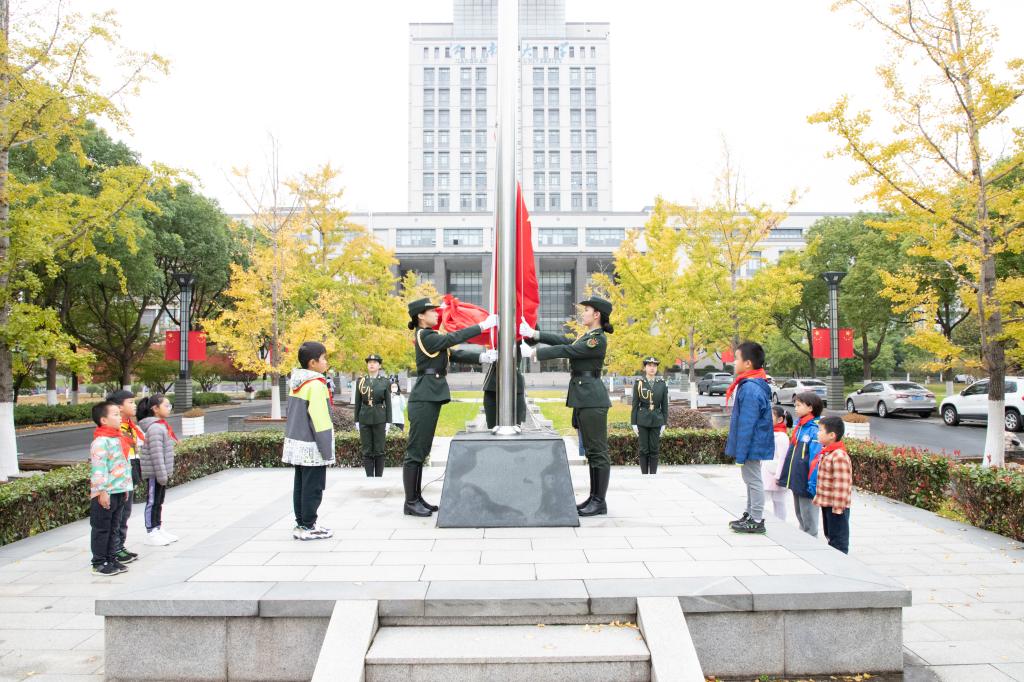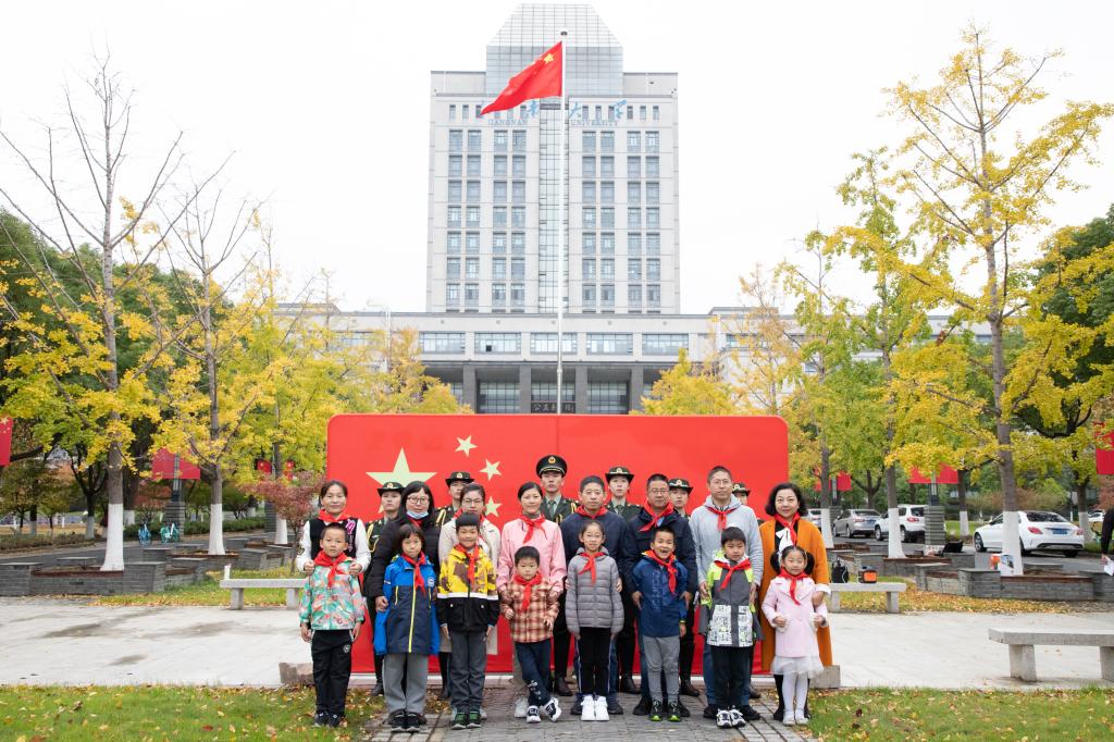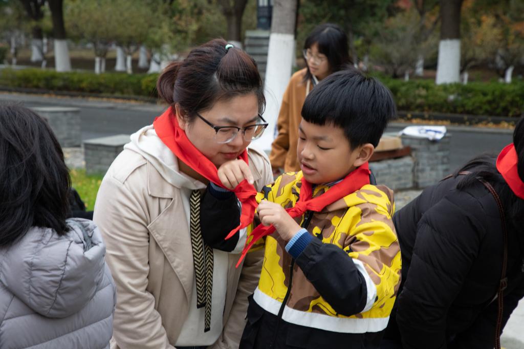 活动伊始,8名小朋友为家长敬献红领巾。随后,伴随着雄壮的《义勇军进行曲》,国旗班成员与小朋友们手拉手,共同迈着铿锵的步伐,完成了出旗、升旗等环节任务,鲜艳的国旗迎风飘扬,点燃着每一位参与者的爱国心。