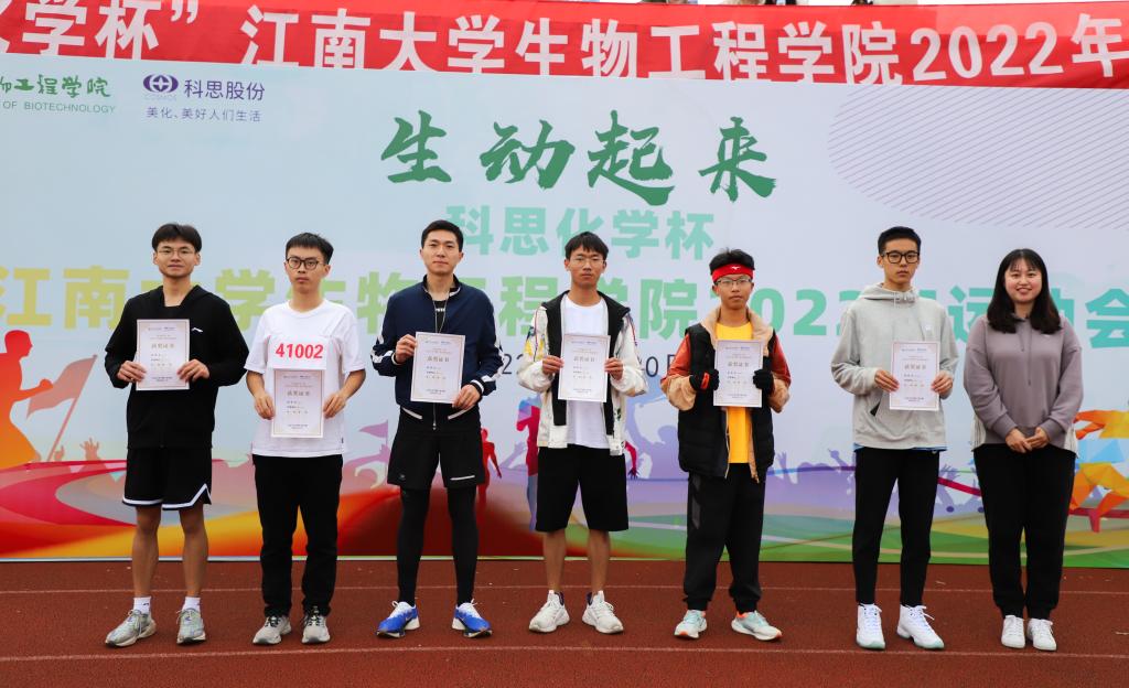 本次运动会共设置了10项田径项目以及8项趣味项目,共有本硕博学生组成的10支代表队参与。经过一整天的激烈角逐,最终研究生代表队、生物一班代表队、基地二班代表队分获团体总分第一、二、三名。张晨昊、胡力元、徐昊、吴灿轩,陈丹、何玙冰、牛月恒、易钰等8位同学分获男子组、女子组个人总分前三。研究生代表队、酿酒二班代表队、生工三班茅台班联合代表队获得道德风尚奖。