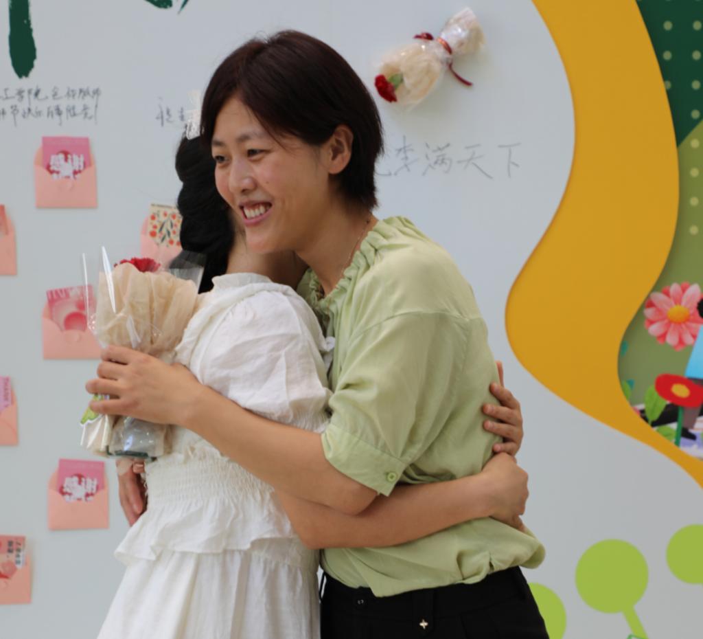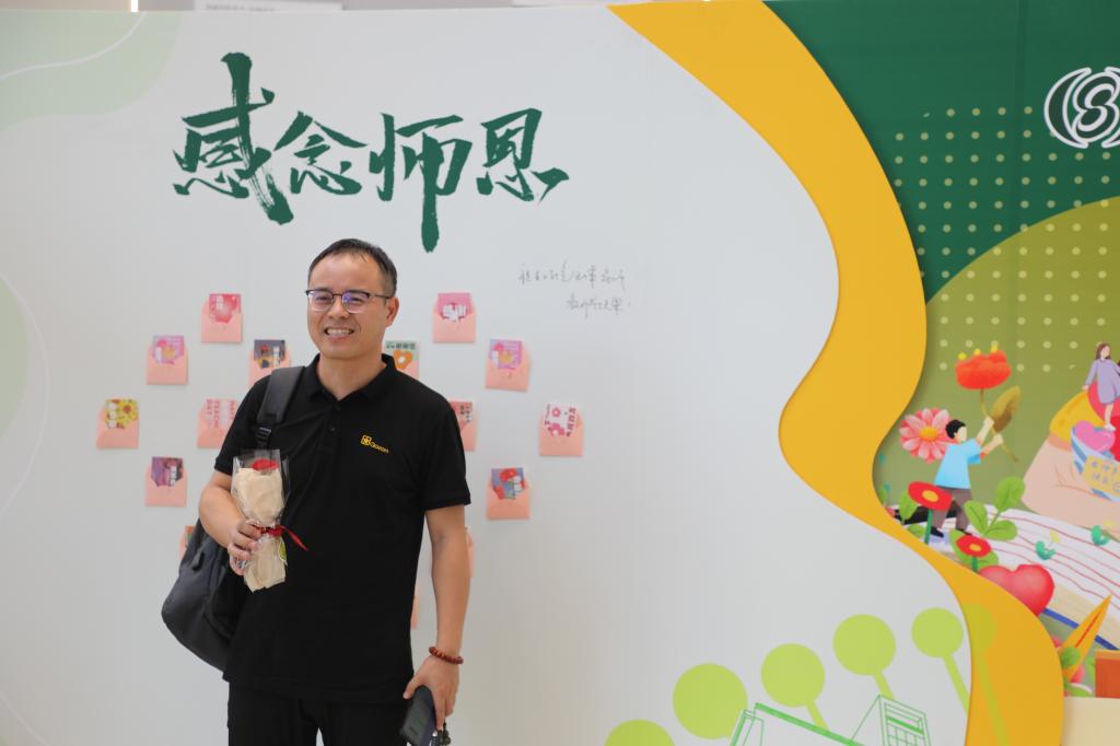落其实者思其树,饮其流者怀其源。活动现场被心形康乃馨花装点,与展板上同学们亲手制作的手绘贺卡所组成的心形造型遥相辉映。志愿者双手递上一束花,热情喊一句“老师祝您节日快乐”,真诚的谢意洋溢在师生之间。在留言板上,同学们留下了对老师们的深切告白:“三尺讲台栽桃李满园,挥洒青春育四海才子”“‘师’与远方感念在心”……对老师的感激之情流淌在字里行间。贺卡盲盒抽取活动,是今年教师节的一大亮点。老师们从信封里随机选择一张贺卡,背面是同学们亲手绘制的祝福贺卡,温暖的色彩、朴实的话语,映入眼帘,暖在心头。不仅在主活动区有温情,在教学楼、实验室、军训场也是感动一波又一波。课前给老师的惊喜祝福、军训间隙的真挚献唱,生工学子“花式告白”敬爱的老师。心存感恩,致敬每一位提灯引路的教育追梦人。