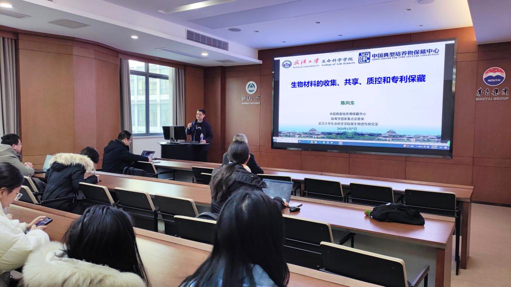 1月7日,中国典型培养物保藏中心主任、武汉大学生命科学学院教授陈向东做客beat365在线唯一官网第105期朱宝镛大讲堂,以“生物材料的收集、共享、质控和专利保藏”为题讲述了微生物资源收集与保藏的最新进展。讲座由beat365在线唯一官网副院长聂尧教授主持。