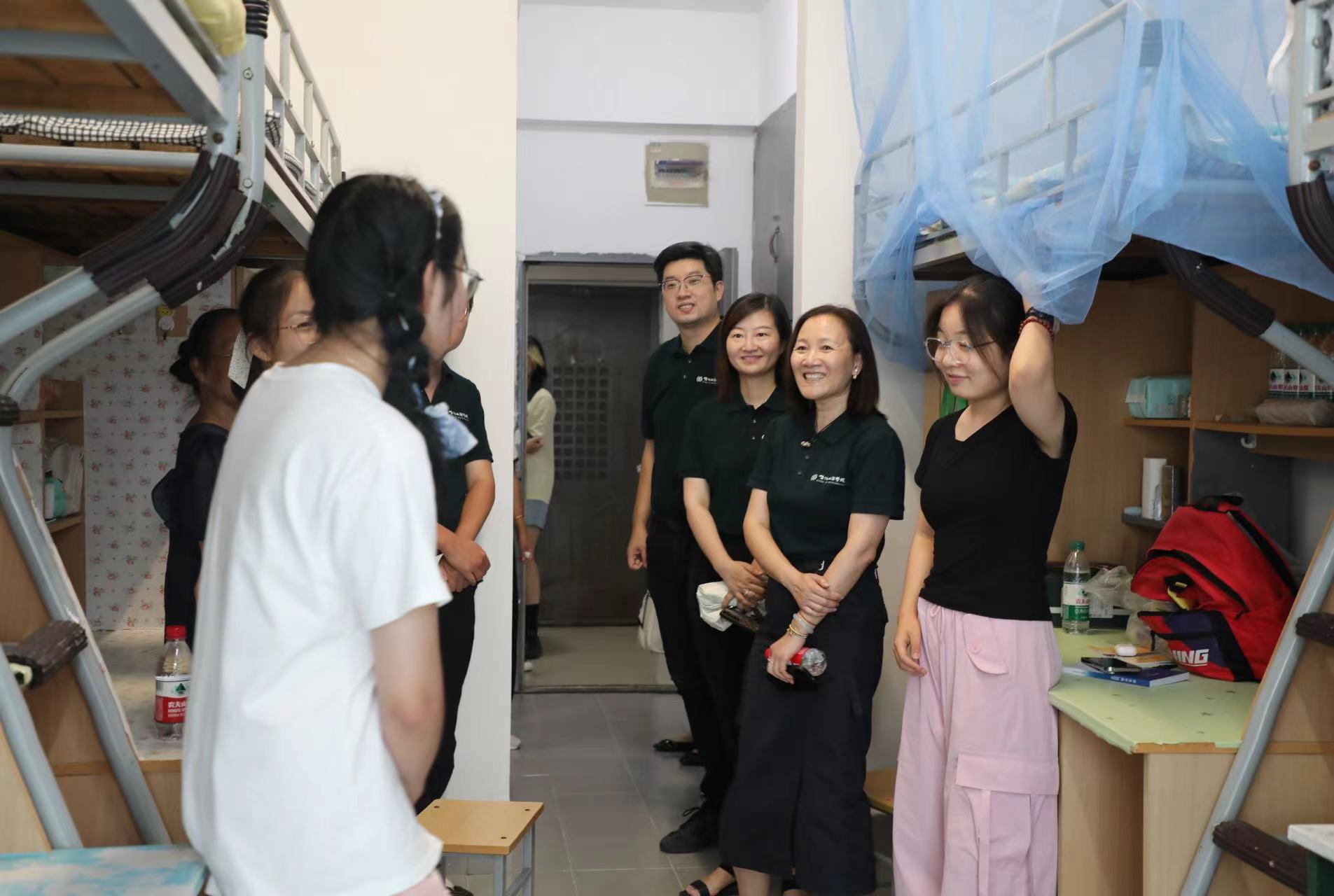 暖“新”关怀,温情系师生。为深入了解2024级新生入学情况,倾听他们的心声,帮助其营造良好的生活与学习环境。8月23日下午,beat365在线唯一官网领导和老师走进新生宿舍,与同学们进行了面对面的交流,关心同学们的生活起居和专业学习期待,并就新生入学教育、军训安排、宿舍安全、反诈防骗等进行了解答和提示。同学们纷纷表示深切感受到了学院对同学们无微不至的关心与关爱,面对即将展开的大学生活,将以昂扬的精神面貌积极融入新环境、拥抱新梦想、投身新征程。
