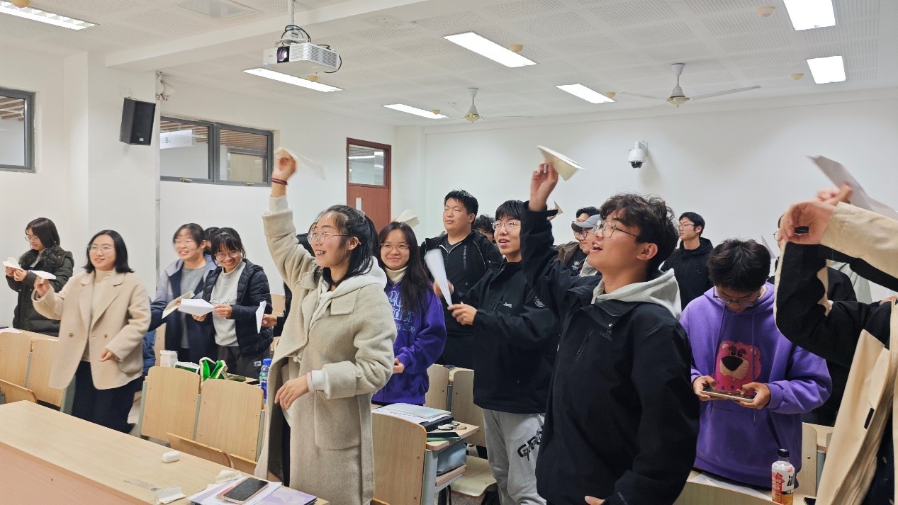 通过一场趣味十足的情绪传递小游戏,整个班会拉开帷幕。同学们在互动中感受到情绪的流动与共鸣,体会到外向与内向性格在交流中的不同魅力;随后,主讲人宋润明为大家生动讲解了“I人”与“E人”的心理差异,引出心理班会的主题。在最后的“放飞烦恼”环节,大家将烦恼写在纸飞机上投掷出去,以轻松而具象的方式表达自己的情感,宣泄压力,拥抱希望。