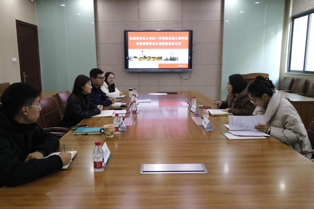 林丹首先代表学院对学工处一行表示欢迎,围绕学院心理育人队伍建设、学生分类管理机制、2025级新生心理测试结果以及后续谈心谈话安排展开全面汇报。