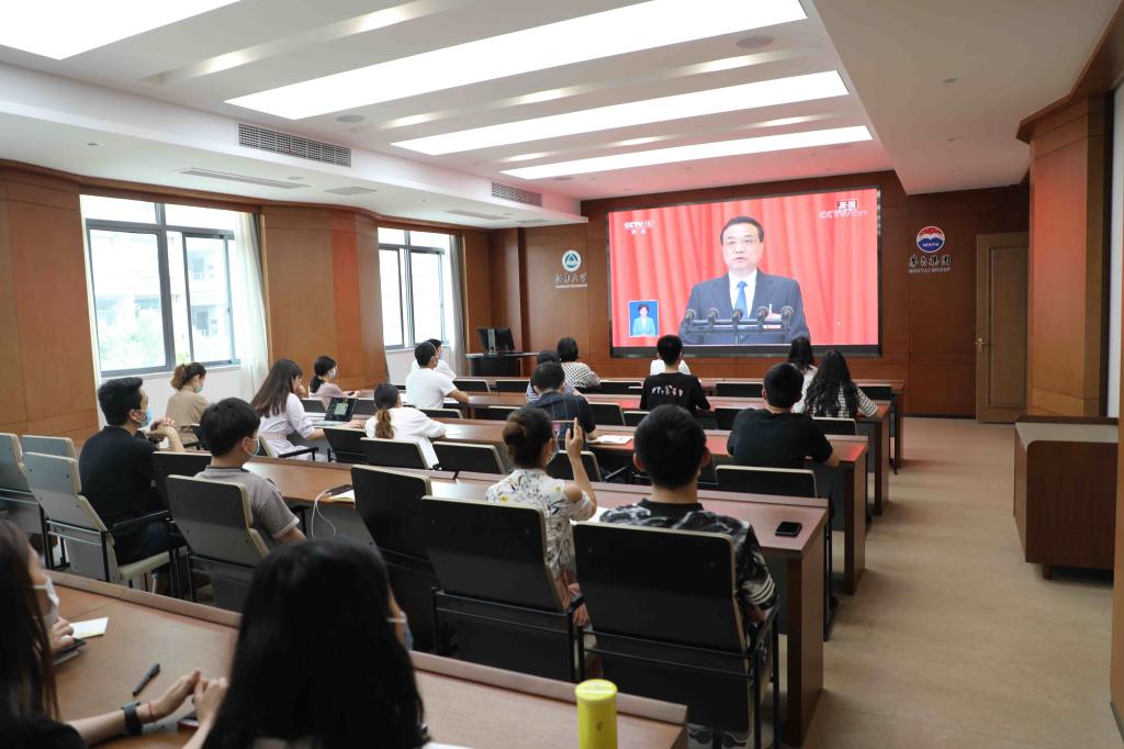 5月22日上午9时,十三届全国人大三次会议在北京开幕,国务院总理李克强作政府工作报告。beat365在线唯一官网组织师生在会议厅、实验室、家中通过电脑、手机、电视等多种方式收看开幕会直播,关注两会动态。本次会议是在统筹推进新冠肺炎疫情防控和经济社会发展的关键时刻、全面建成小康社会决胜阶段召开的一次重要会议,是我国政治生活中的一件大事,为全国人民提振士气,努力在攻坚克难中开创发展新局面,注入极大信心和动力。