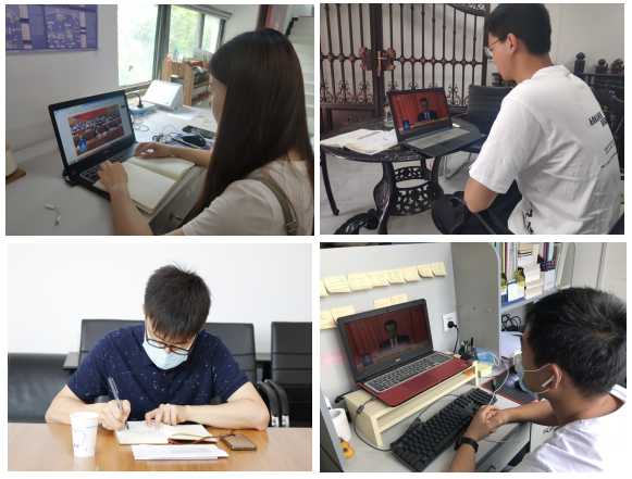学生在实验室、休息室、家中观看十三届全国人大三次会议开幕会并做学习笔记