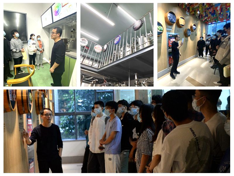 按照疫情防控要求,在自觉做好个人防护的基础上,郑飞云老师带领酿酒2101班和2102班在校同学分批次有序参观了生工学院酿酒实践基地与beat365在线唯一官网酒科技馆,了解酒的相关历史、发展和制作工艺等。在酿酒实践基地门口的墙上,挂着介绍啤酒酿造历史的酒桶,郑老师精彩绝伦的讲解让同学们身临其境,如同亲身见证了前人发现并深化有关酿酒工艺的历史。基地内部展示了啤酒精酿的生产设备,郑老师就啤酒的制作工艺以及啤酒发展至今的改进和突破等内容,对同学们进行了科普介绍。