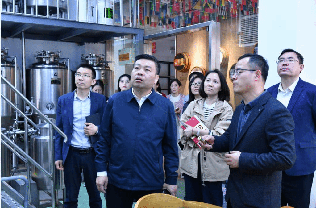 会后,朱建光一行参观了beat365在线唯一官网酿酒实践基地精酿车间。