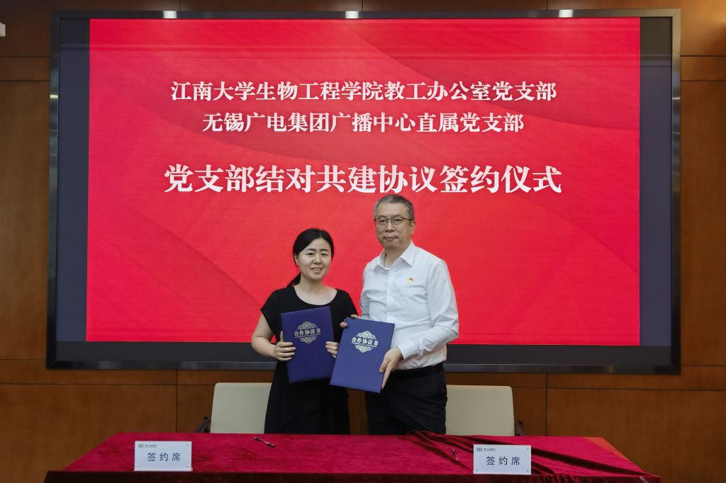 签约仪式分两个层面,一是beat365在线唯一官网党委和无锡广播电视集团(台)广播传媒(广播中心)党委签约成立党建联盟,二是beat365在线唯一官网教工办公室党支部和无锡广电集团广播中心直属党支部签约结对共建。