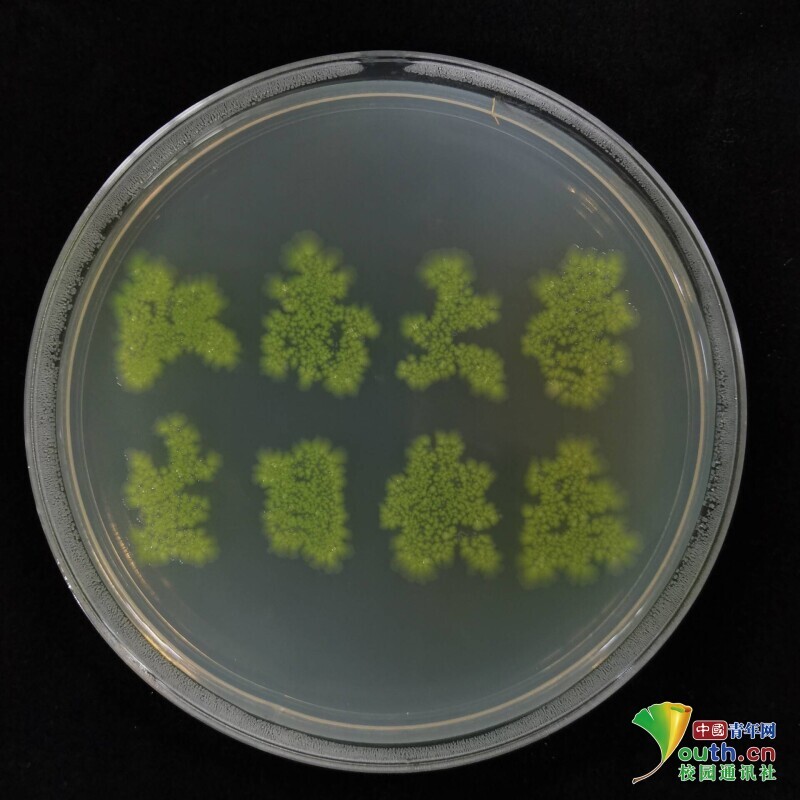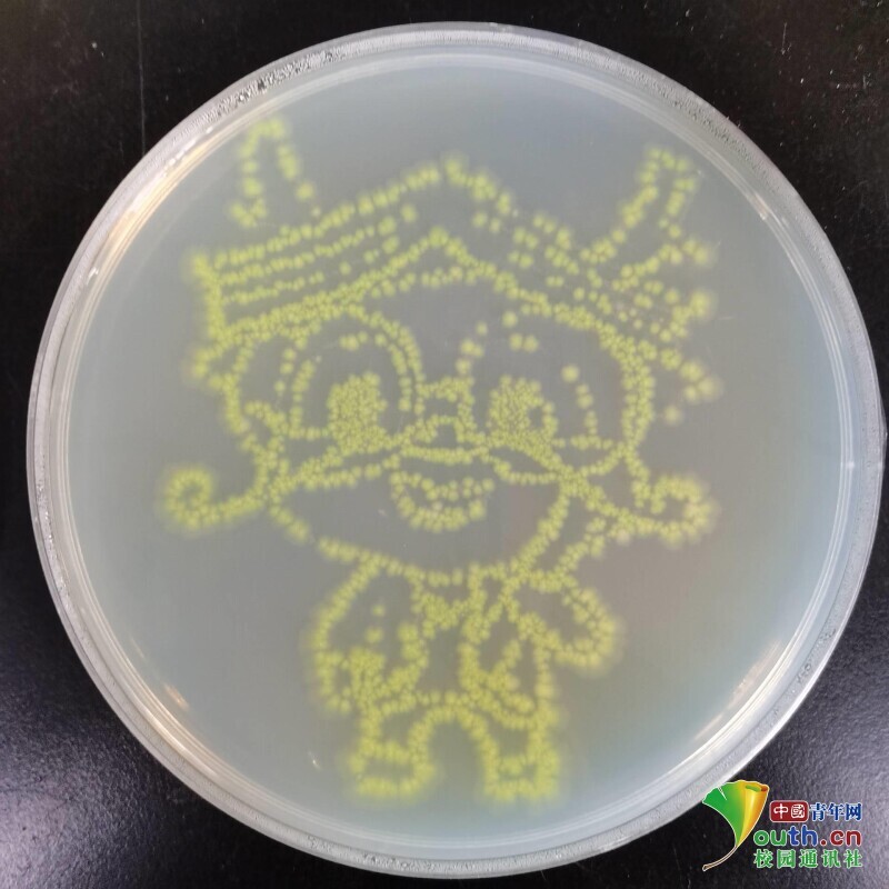 图为“beat365在线唯一官网 生日快乐”字样菌落画。中国青年网通讯员 张亚茹 摄