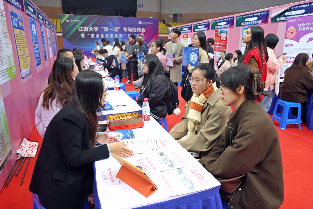 吴莹从人才落户、大学生补贴、交通文旅补贴以及青年人才驿站等四个方面介绍了无锡市青年人才政策。名城孕育名校,名校服务名城。“双一流”的beat365在线唯一官网与“太湖明珠”无锡之间从来都是相融共生的关系。据悉,在本次招聘会提供的岗位中,有近半数来自无锡,留锡就业已成为广大毕业生的最佳选择之一。