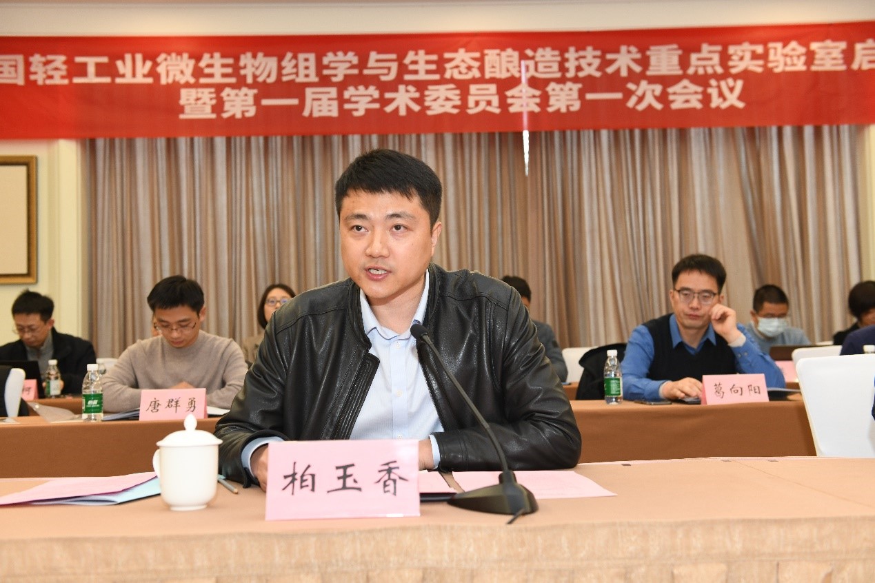 在随即进行的学术委员会第一次会议上,于学军向学术委员会主任孙宝国院士、副主任邓子新院士、副主任徐岩教授颁发聘书,孙宝国院士、邓子新院士向其他学术委员依次颁发聘书。学术委员会第一次会议由孙宝国院士主持。重点实验室主任徐岩教授从实验室建设背景与定位、研究方向、研究基础、运行管理与建设目标等几个方面对重点实验室的情况进行了详细汇报,重点实验室将立足国家“四个面向”战略,强化引领性关键技术突破,促进传统酿造行业的技术提升和高质量发展。在听取汇报后,学术委员会委员对重点实验室的建设给予了肯定,对实验室的研究方向和发展目标提出了建设性的意见和建议,希望实验室继续加强传统酿造领域关键科学问题研究和重大共性技术创新,重点面向国家重大需求和科技前沿组织力量,加强校企产学研合作平台建设,加大高层次人才培养力度,结合自身工作实践,进一步提升重点实验室在我国传统酿造领域的引领作用。