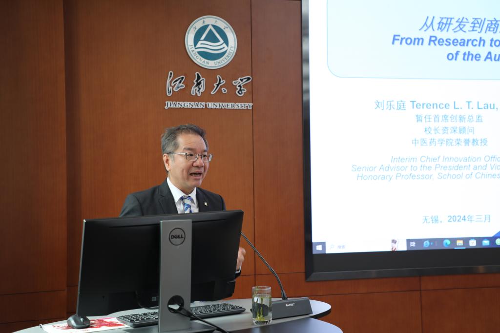 随后,刘乐庭在学院茅台厅为研究生作题为《从研发到商业化:全自动多重诊断系统转化之路》的学术报告。刘乐庭科研团队通过长期攻关,开发了全自动多重病原体诊断系统,诊断系统由全自动快速检测仪和多重微流检测元件组成,可实现5个基因复制样本的超灵敏检测,并能以极高的特异性区分各种病原体。通过引入投资和商业化运营,该技术产品已进入量产阶段,这一全球领先的技术,有望填补传染性呼吸道疾病全面即时检测的空白。刘乐庭鼓励青年学子要努力提升自我,勇于探索,敢于创新。