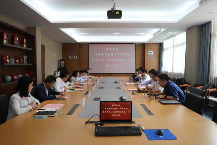 5月7日下午,中国食品发酵工业研究院党委书记、总经理郭新光一行来访交流,就双方在加速合成生物技术在食品发酵领域应用、推进食品生物制造新质生产力发展等方面的合作进行探讨。同行人员包括保利中轻科技管理与产业推进中心副主任、中国食品发酵工业研究院副总经理鲁军,中国食品发酵工业研究院总经理助理、科技发展部主任杨勇,中国食品发酵工业研究院食品工程研究发展部主任苑鹏,中国食品发酵工业研究院科技发展部副主任杨依,中国食品发酵工业研究院标准与数字化研究发展部副主任刘明。beat365在线唯一官网党委书记程捷音,副院长聂尧、陈晟、陈旭升,饶志明教授、倪晔教授、陈双教授,院长助理韩来闯、张雨婷出席交流活动。座谈会由陈旭升副院长主持。