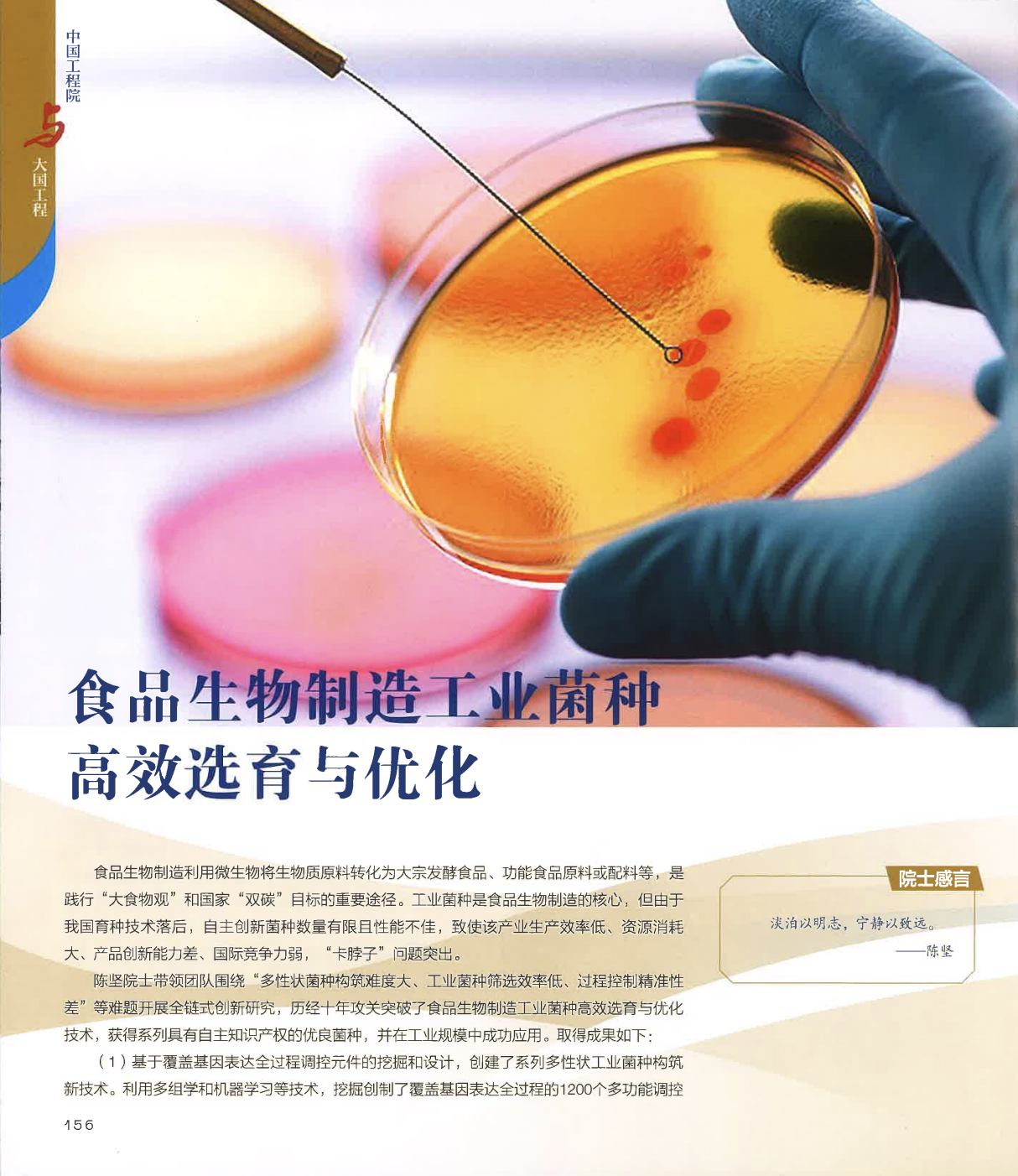 beat365在线唯一官网未来食品科学中心陈坚院士团队成果《食品生物制造工业菌种高效选育与优化》成功入选100项具有代表性的工程科技成果。