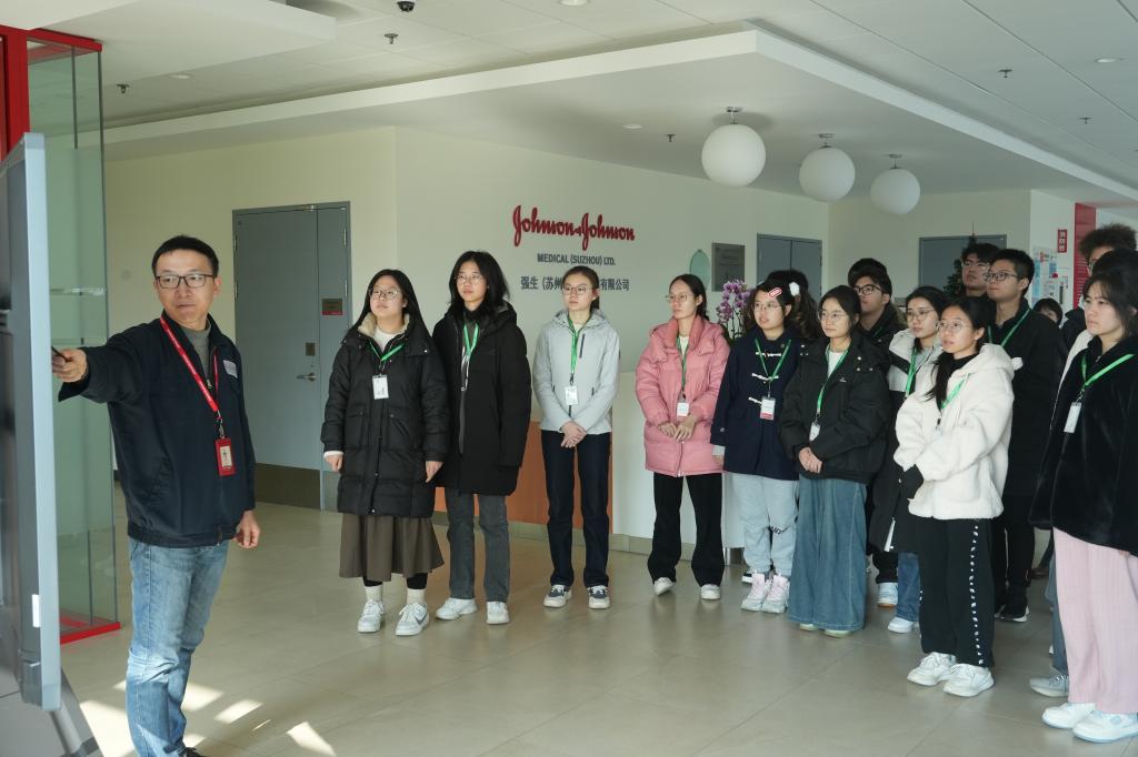 随后,莫钧年等企业讲师带领同学们参观了强生苏州产业园区的外科工厂、微生物实验室及骨科工厂。通过实物展示、视频演示、专业讲解,同学们深入了解了爱惜康缝线等产品的生产过程,对强生(苏州)医疗器材有限公司智能化生产管理、全流程质量控制有了更直观切实的认识和体会。活动最后,同学们参加了课程考核并获得证书。