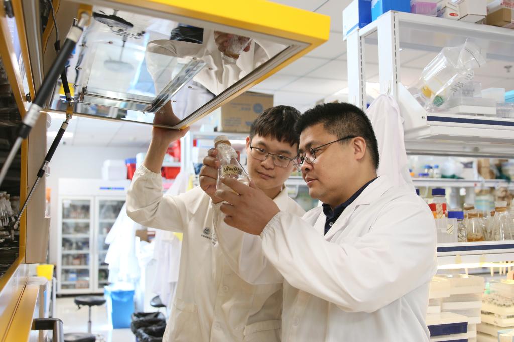 团队成员在观察实验样本。资料图片