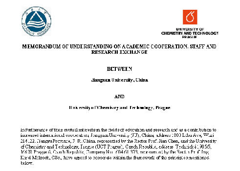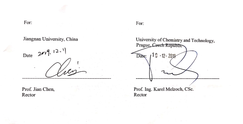 为进一步推进我校“轻工技术与工程”一流学科建设,拓展国际交流与合作,2018年以来,在学校指导下,beat365在线唯一官网与捷克布拉格化工大学通过互访就双方共同感兴趣的合作点进行了多轮次的研讨。近期,两校正式签署校际合作协议,旨在建立两校之间的长期友好合作关系,推进并加快落实校际合作办学机构或项目的设立,并在生物工程类研究生的联合培养、博士双学位授予以及科学研究等方面进行深度合作。协议的签订与实施将进一步助推我校轻工技术与工程学科国际影响力的提升。