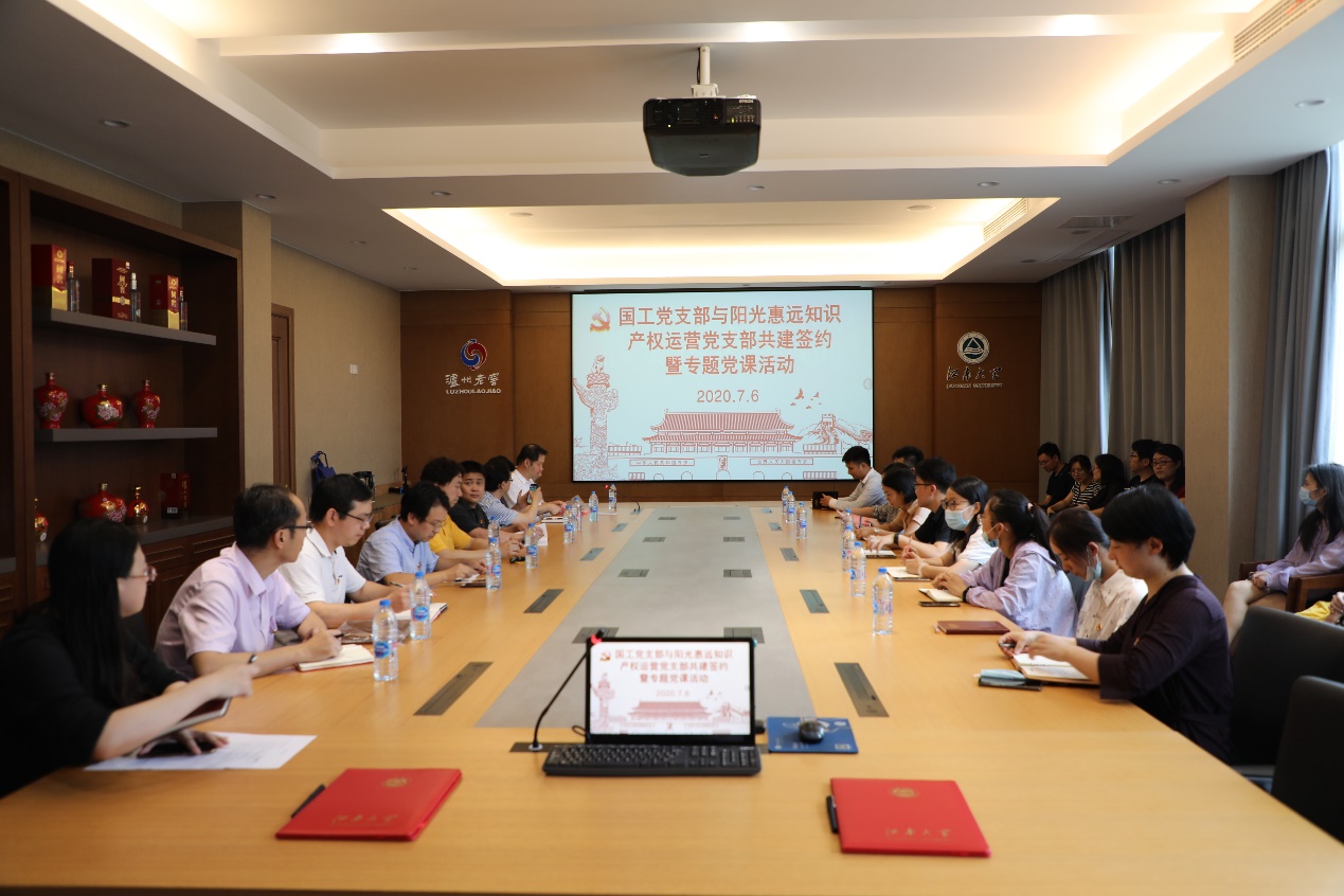 为进一步搭建交流平台,创造交流机会,提升党建和业务水平,2020年7月6日下午,在beat365在线唯一官网B303会议室,beat365在线唯一官网党委粮食发酵工艺与技术国家工程实验室党支部与阳光惠远知识产权运营党支部举行了共建签约仪式,同时beat365在线唯一官网党委书记王维为两个支部的所有党员同志上了一堂题为 “历史之遇与现实之思——全球疫情危机背景下的大国担当” 的党课。阳光惠远知识产权运营有限公司总经理张勇、国家工程实验室常务副主任李兆丰、副主任饶志明、陆震鸣、beat365在线唯一官网副院长丁重阳、未来食品科学中心副主任周景文等参加了此次活动。