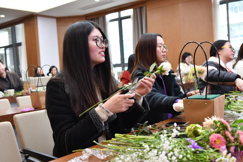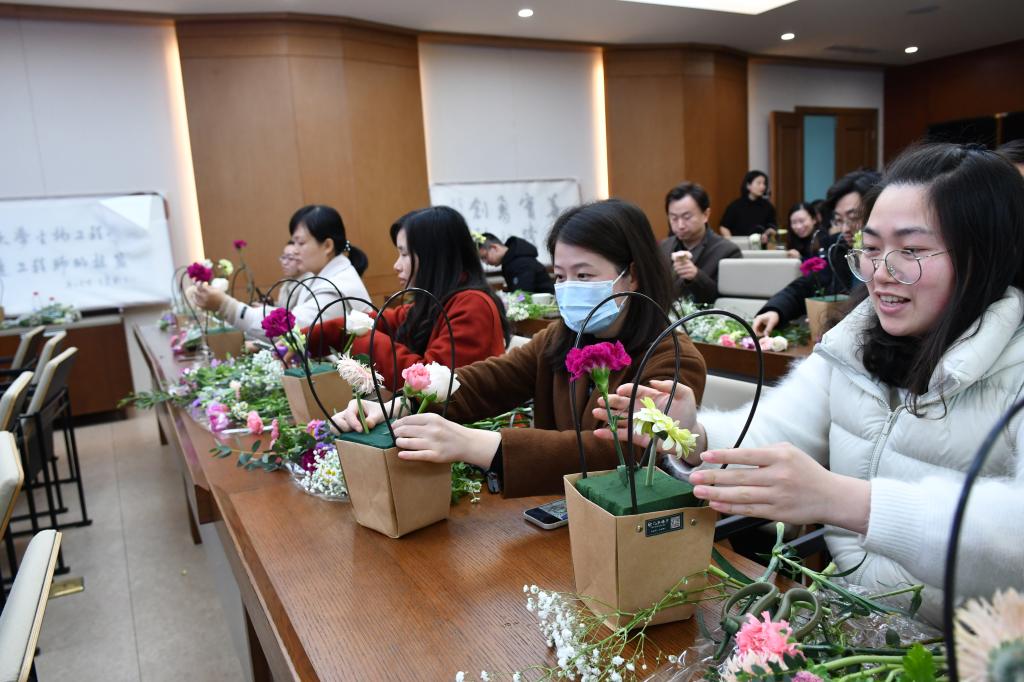 以美好之心,谱奋斗之曲, 在三八国际劳动妇女节来临之际,beat365在线唯一官网分工会为学院教师准备了“醉美巾帼”系列活动,为女性教职工庆祝节日,丰富女教师的业余文化生活。学院工会于3月5日下午在茅台厅举行了插花活动,3月8日上午举办了新时代女性形象中的色彩美学讲座。