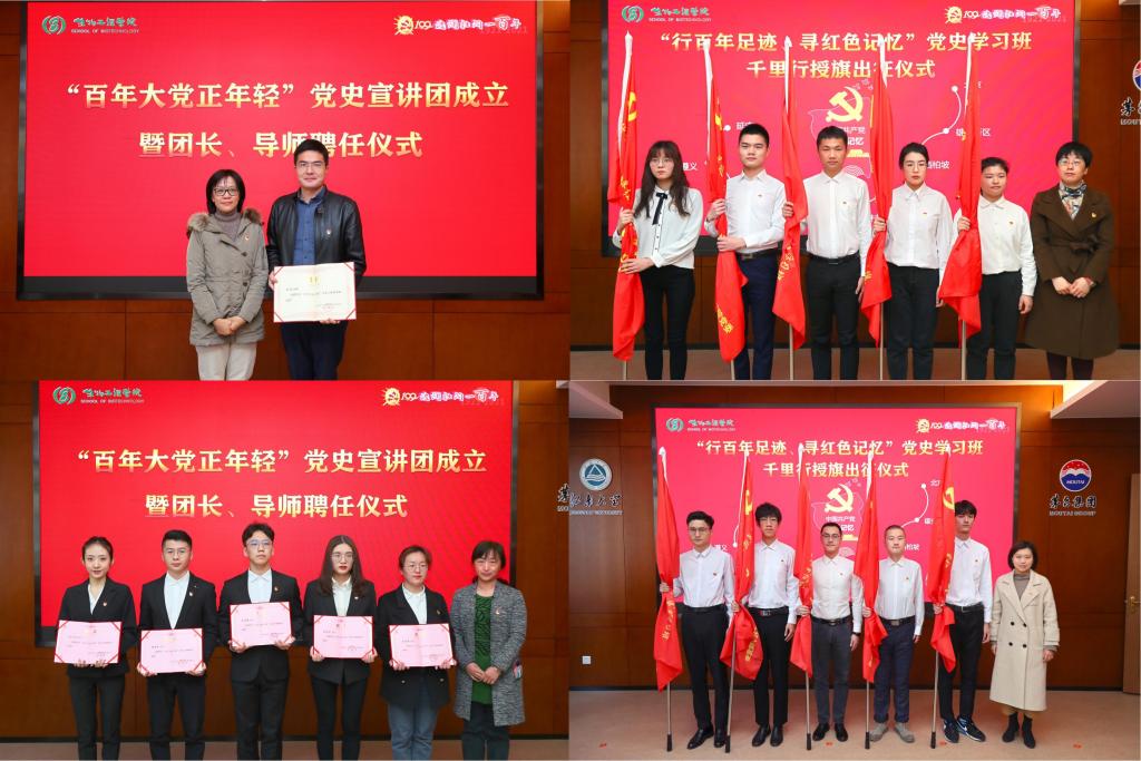 活动中,倪守红、张影陆、倪松涛共同揭幕“百年华诞百天倒计时牌”,正式启动学院庆祝建党百年之“百”系列活动,为迎接七一华诞注入昂扬向上的精气神。徐光昊与王维共同揭牌“滨湖团区委——beat365在线唯一官网党史学习联盟”,让青年宣讲团有阵地、有资源、有平台。“百年大党正年轻”党史宣讲团正式成立,张影陆颁发导师聘书,李凤梅颁发宣讲团团长聘书,侯勇在导师代表动员讲话中为生工学院将党史学习与社会实践相结合的特色党建品牌活动点赞,并预祝党史宣讲团宣讲取得丰硕成果。张菁燕、杨飏为十个“行百年足迹、寻红色记忆”党史学习班出征授旗,开启沉浸式、情景式、互动式的社会实践。周云龙宣读了beat365在线唯一官网建党百年系列活动方案,正式发布“波澜壮阔奋斗百年路,凝铸一流启航新征程”beat365在线唯一官网庆祝中国共产党成立100周年主题活动内容。活动后,王维开讲“学党史,知党情”党课第一讲。