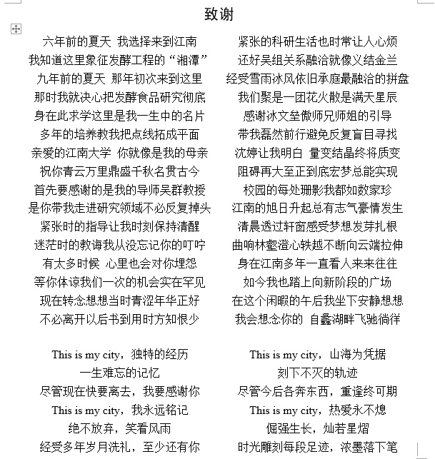 班世博的“毕业论文致谢”原文