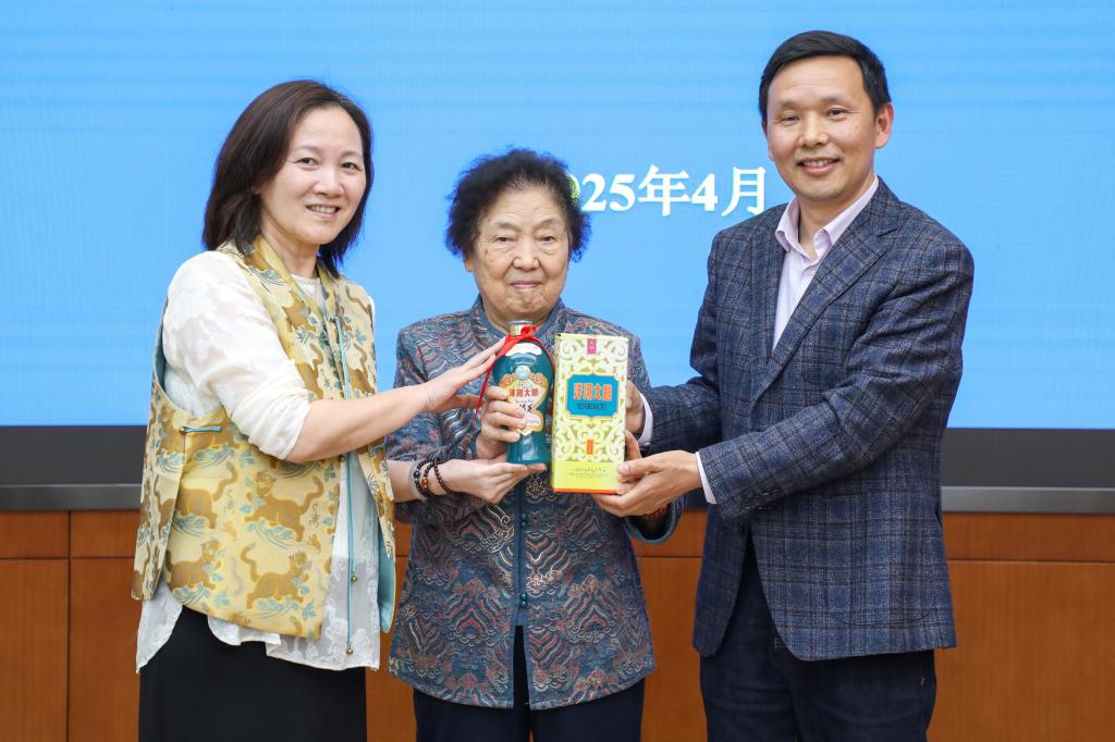 活动现场,陈先现场讲述了一瓶梁老生前签名的洋河大曲酒背后的故事,现场邀请叶秀英女士签名,并将其赠送给beat365在线唯一官网,程捷音代表学院接受了捐赠。