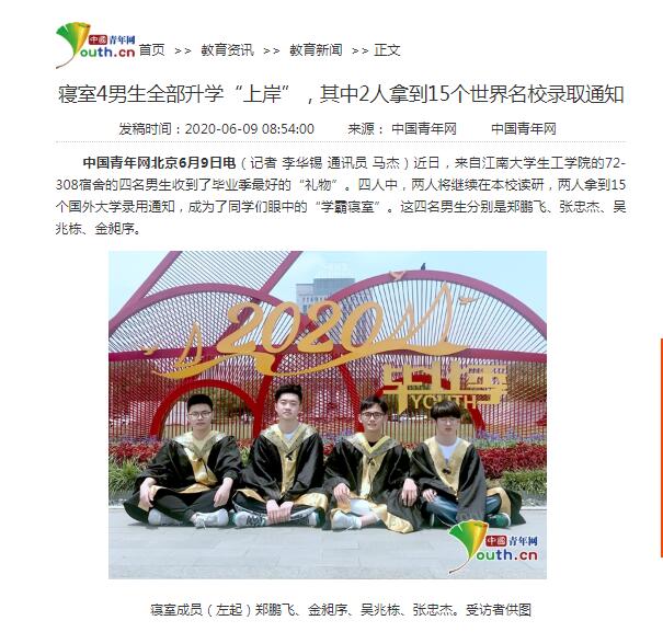 中国青年网报道72-308宿舍升学事迹