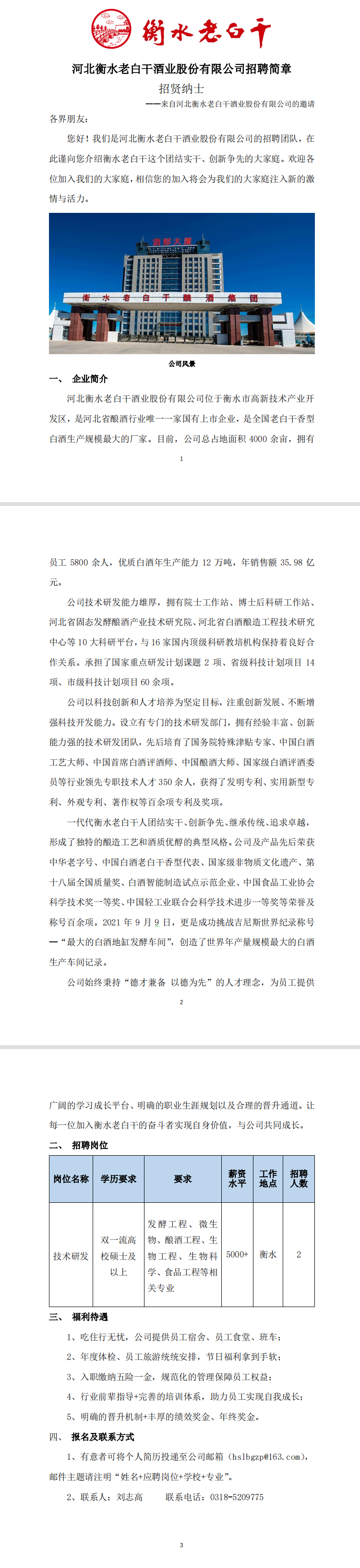 生工学院【2022】11号 河北衡水老白干酒业股份有限公司招聘简章